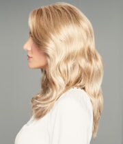 This luscious, shoulder-length style features gentle waves that tumble loosely for loads of movement while the lace front monofilament center part allows for off-the-face styling and gives the overall silhouette a contemporary edge.