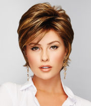 Textured layering and feathered lengths with a soft fringe for a perfectly stylish ‘undone’ look. Face-framing sides are long enough to be tucked behind the ears.